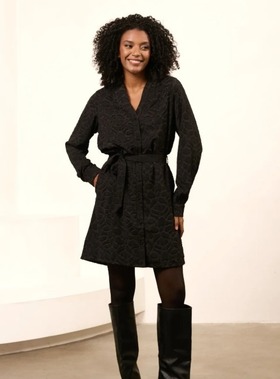 Jurk travel halve doorknoop fijne print | Nelle €99,95€ 69,97sale