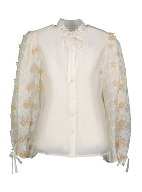 Blouse glanzend met bloemen op mouw | Amelie & Amelie