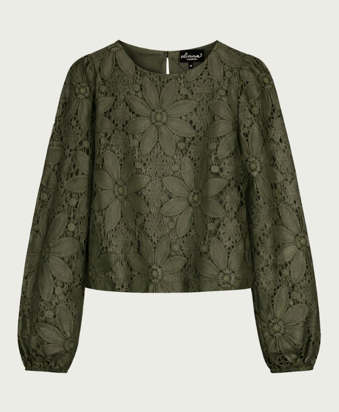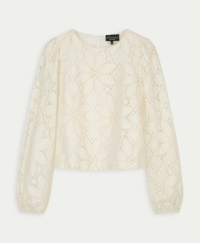 Deze top van Elvira heeft een opengewerkt bloemenpatroon, de top heeft een ronde hals.