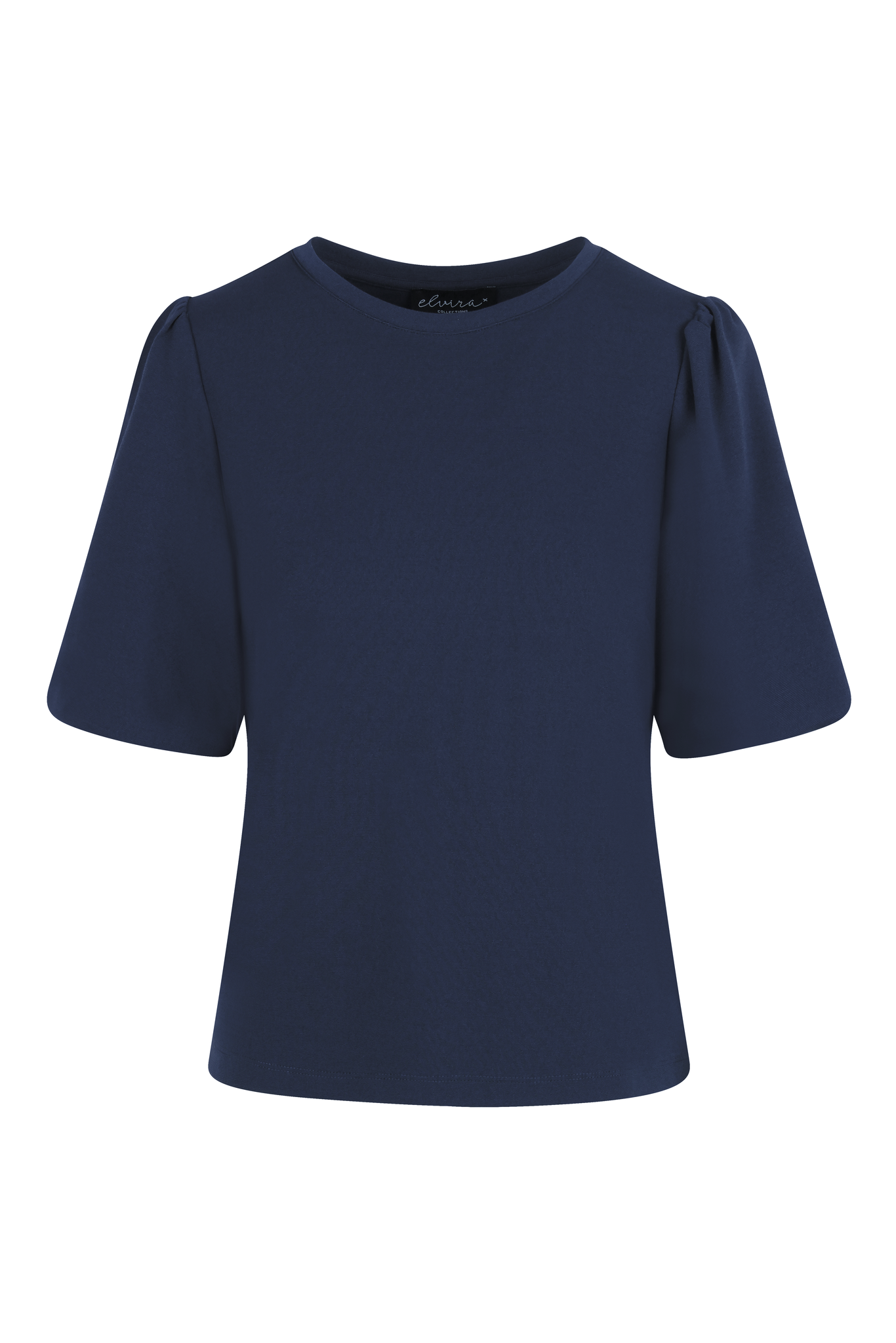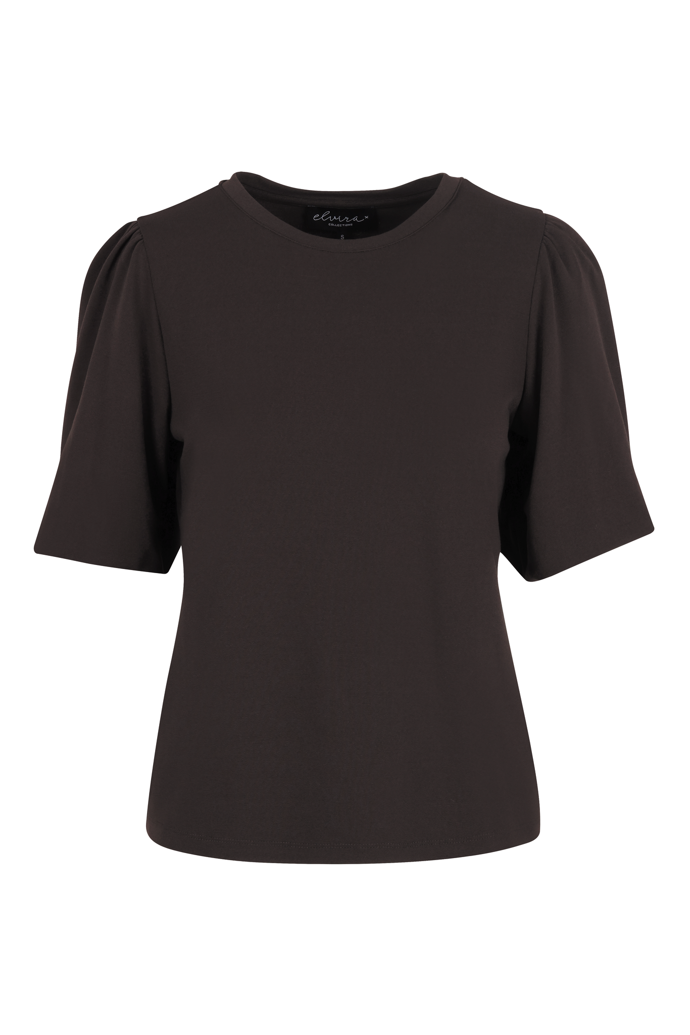 Deze rok van Elvira kan als twin-set gecombineerd worden met de top met ballonmouw. De rok is rechtvallend heeft een split aan de zijkant en een bies aan de zijkant. Bij de donkerbruine variant is de bies zandkleurig.