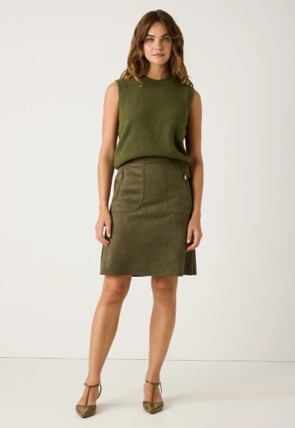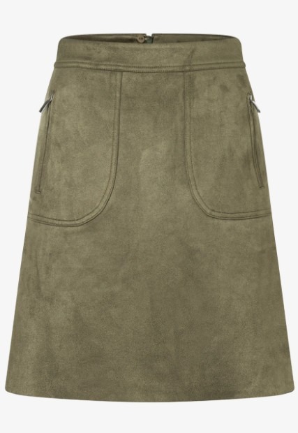 Deze mesh rok van MORE & MORE met een kaki/blauwe print en donkerblauwe satijnen elastische tailleband kun je zowel met een lichte trui als met een elegante satijnen blouse of sportief shirt stylen.