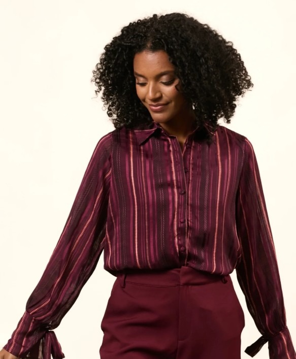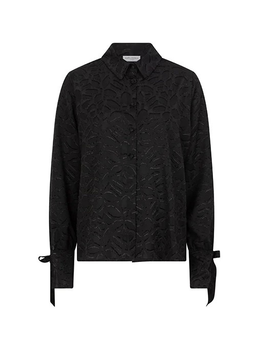 Blouse Mette is een blouse. De blouse heeft een klassieke kraag, knoopjes over de gehele lengte en een strikdetail bij de mouwuiteinden. De zwarte blouse is qua pasvorm rechtvallend.