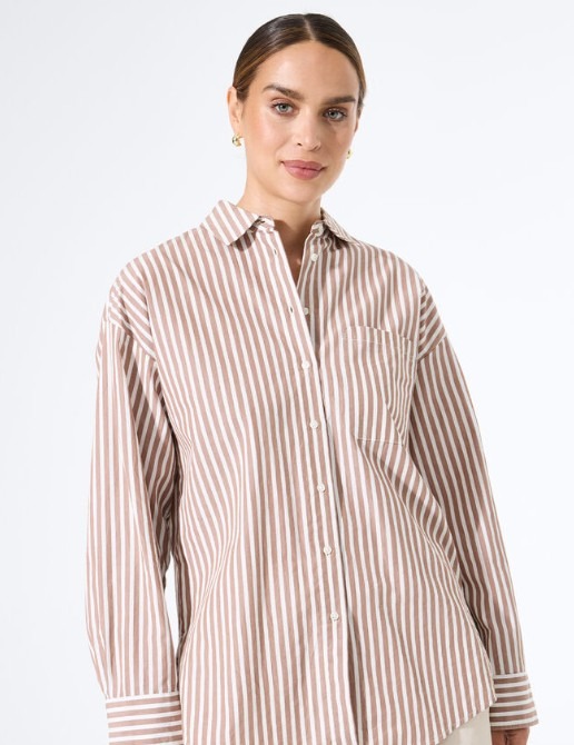 Gestreepte blouse met borstzakje. Deze blouse heeft een kraag, lange mouwen en een knoopsluiting, wat zorgt voor een klassieke uitstraling. Het heeft een wijde pasvorm die comfort en stijl combineert. Dit item is gemaakt van 100% katoen, wat zorgt voor een ademende en zachte feel.