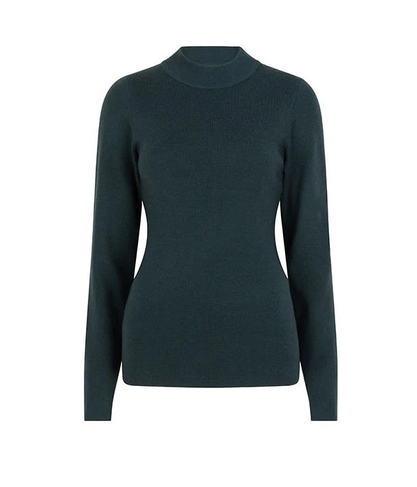 Trui Lyra is een groene gebreide trui met raglanmouwen. De comfortabele trui heeft een hoge ronde hals en bevat veel stretch. De groene trui is qua pasvorm oversized.