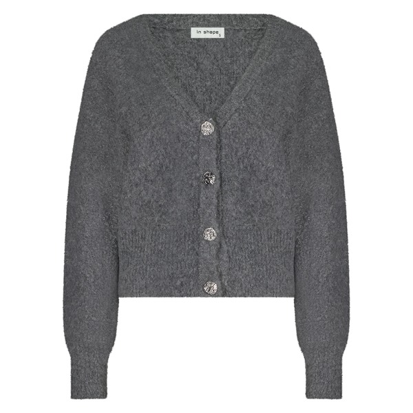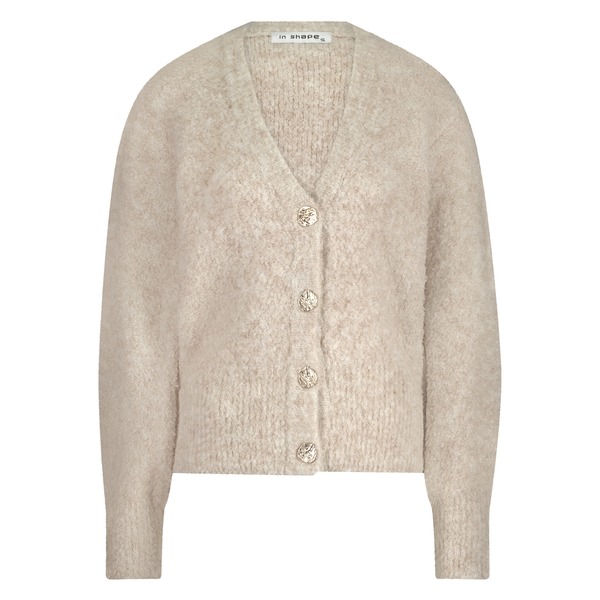 Dit vest van In Shape is grofgebreid, heeft een v-hals en knoopsluiting.