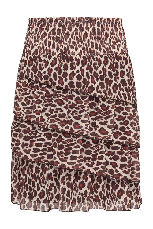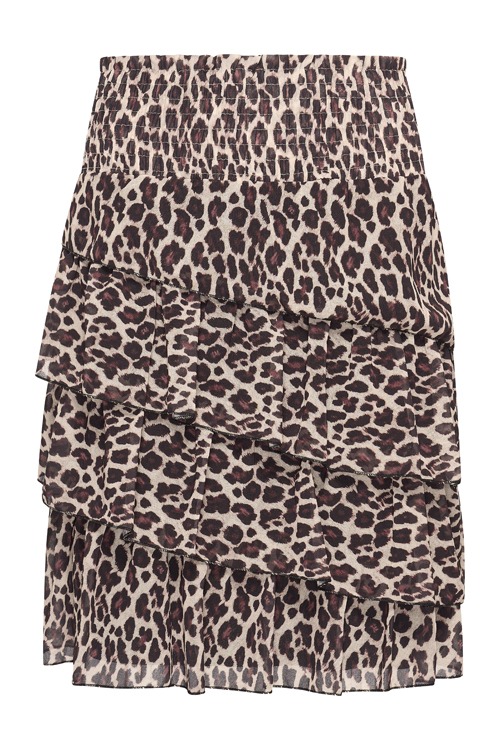 Deze strokenrok van ons label stralend heeft een allover panterprint.