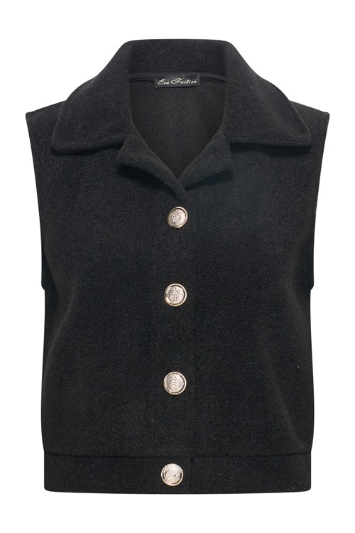 Basis gilet wat makkelijk gecombineerd kan worden op een jurk of rok.