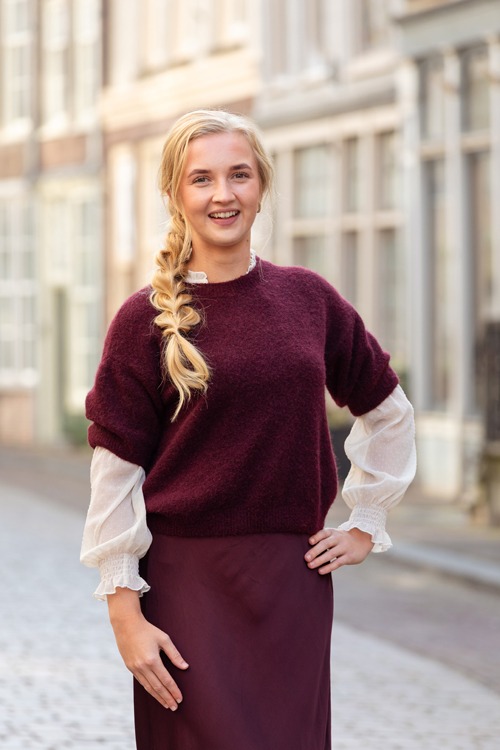 Deze trui van Stralend heeft korte mouw en kan makkelijk zo gedragen worden en met de koudere dagen bijvoorbeeld een leuke top of blouse eronder.