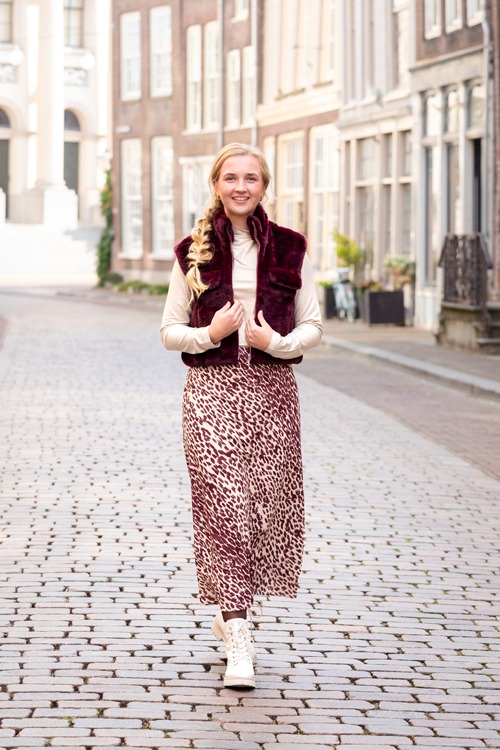 Deze satijnlook rok van Amelie & Amelie heeft een allover patroon, een elastische band en is ietwat uitlopend.