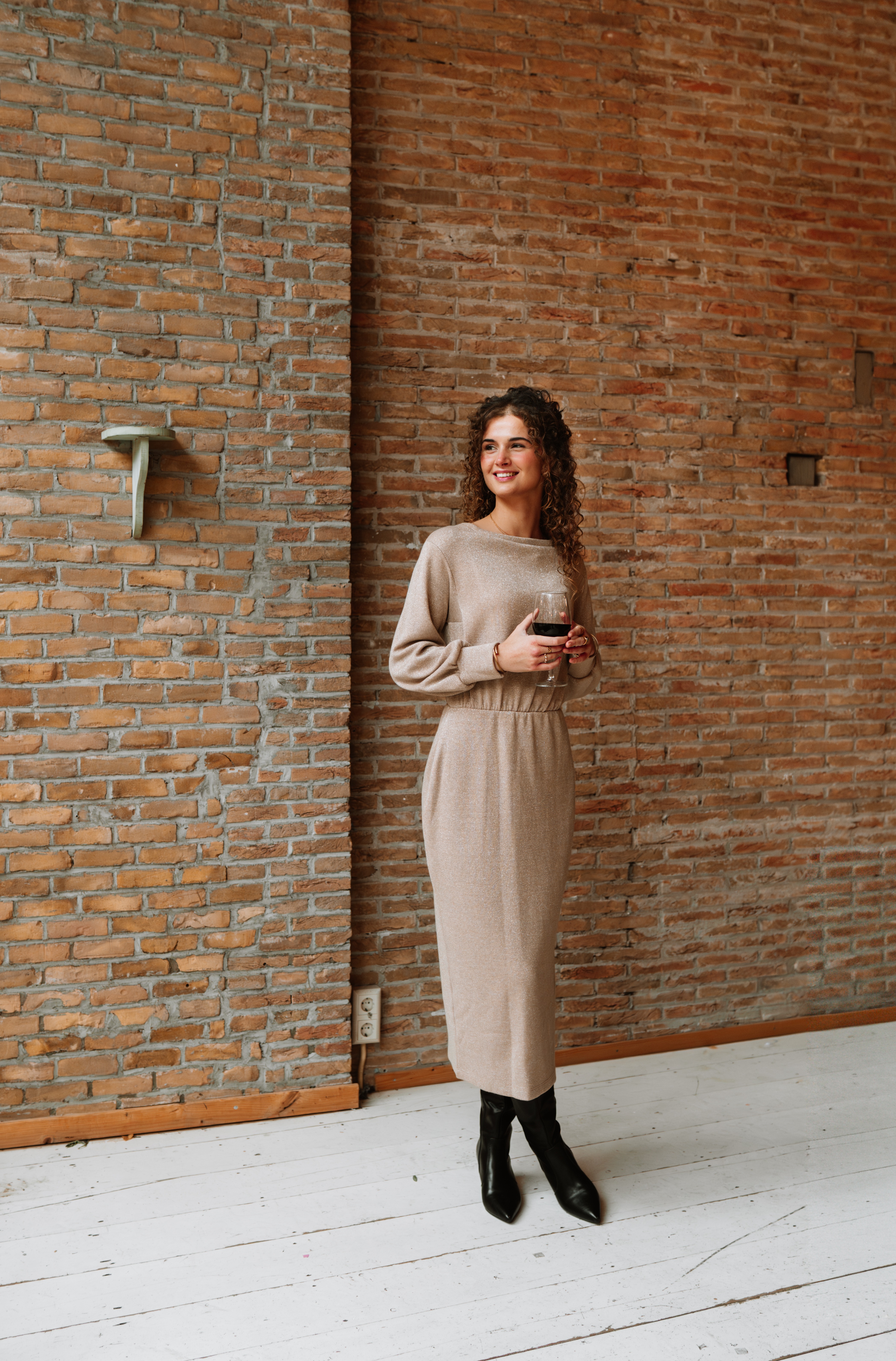 Jurk met elastiek in de taille en zilverdraadje | Amelie & Amelie