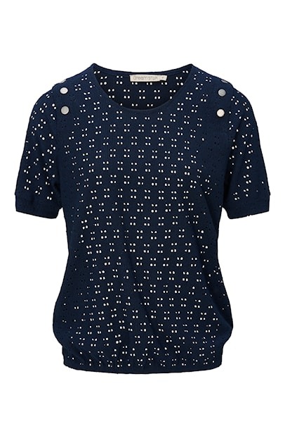Dit jasje van Dreamstar heeft een denimlook met knoopsluiting en zijzakken met drukknopen en een elastische band aan de onderzijde.