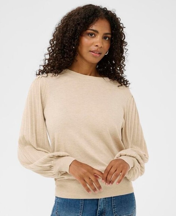 Deze jurk van Kaffe heeft een zwart/zand kleurige print, de jurk heeft een v-hals, volledige doorknoopsluiting en een smal ceintuur.