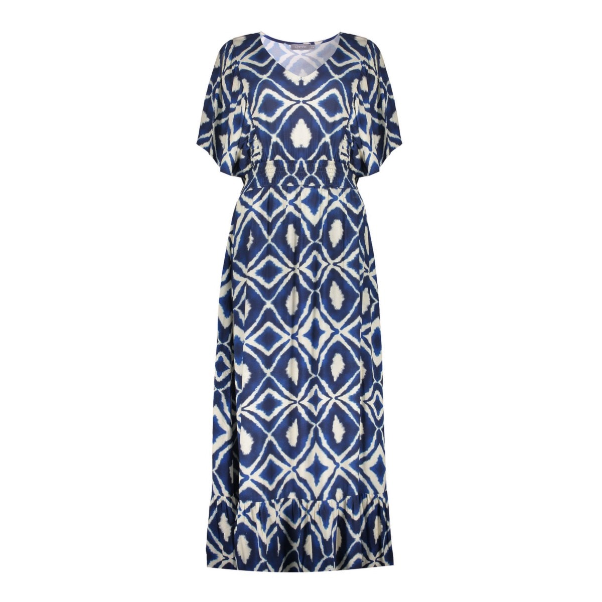 Deze jurk van Geisha is een echte must-have met een aztecprint. De maxi-lengte geeft het ontwerp een elegante flow, terwijl de V-hals en vlindermouwen zorgen voor een luchtig silhouet. De gerimpelde tailleband accentueert subtiel de vorm en creëert samen met het strookdetail onderaan de jurk een vrouwelijke lijn.