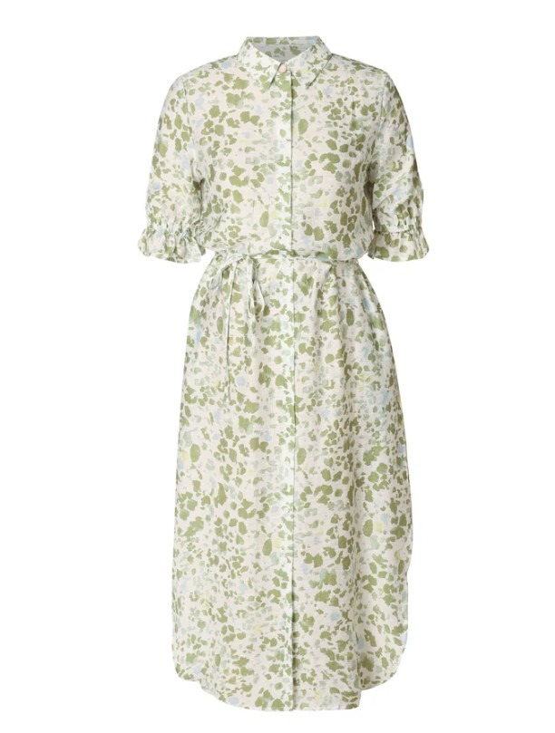 Deze jurk heeft precies die ontspannen zomervibe waar je meteen blij van wordt. De soepele stof beweegt mooi met je mee en de print brengt zacht kleuraccent in je outfit. Dankzij het doorknoopmodel, de rufflemouwen en de vloeiende pasvorm draag je haar heerlijk op warme dagen.
