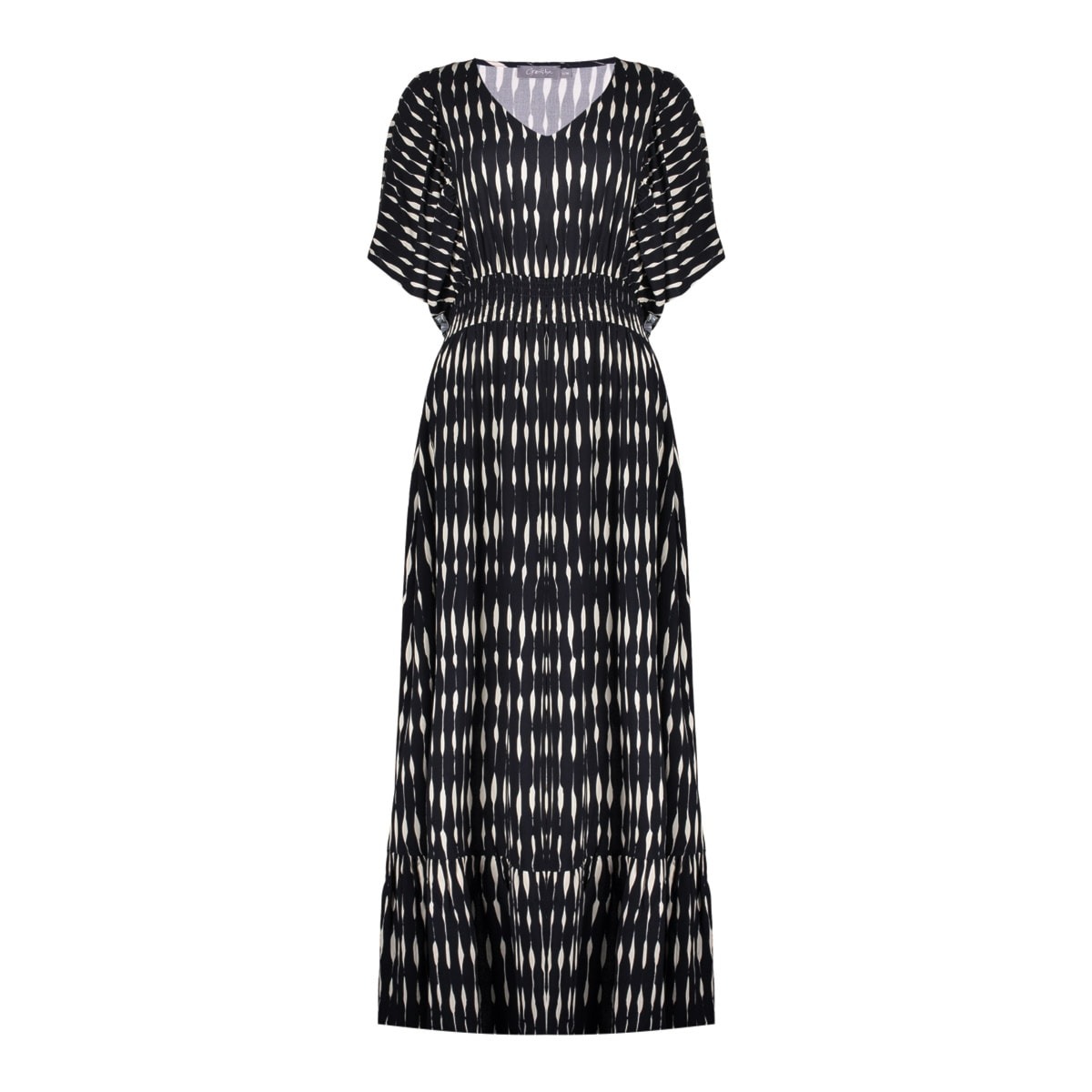 Deze jurk van Geisha is een kleurrijke midi-jurk met grafische tropische print. De klassieke kraag en 3/4 mouwen met drawstring strikjes geven een speelse twist. Dankzij de strikceintuur accentueer je elegant de taille, terwijl de praktische zakken zorgen voor comfort. De soepele valling en levendige kleuren maken dit dé perfecte jurk voor een uitgesproken, zomerse look met flair.
