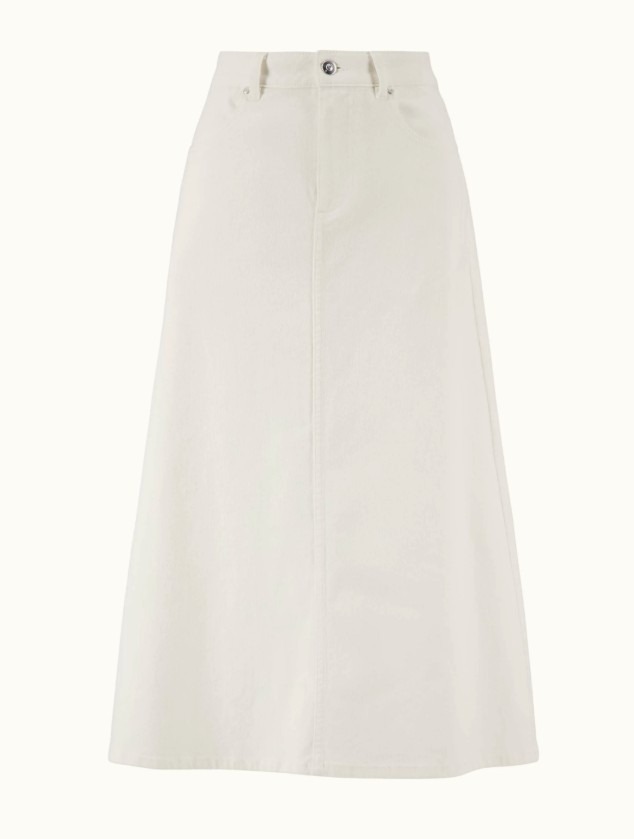 De Zusss wijde jeans rok is een musthave in je garderobe. Deze wijde jeans rok straalt casual elegantie uit en is perfect voor diverse gelegenheden. De rok heeft een off white kleur die makkelijk te combineren is met verschillende tops en schoenen. De stof voelt stevig en kwalitatief aan, een heerlijk item voor het voorjaar en de zomer. Combineer deze wijde jeans rok met zachte truien of luchtige blouses voor een ontspannen, stijlvolle outfit.