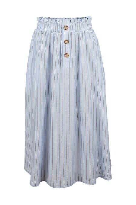 Deze rok van Vila Joy heeft een allover streepdessin met een goud/glitter streep, de rok heeft een elastische band en 3 sierknopen.