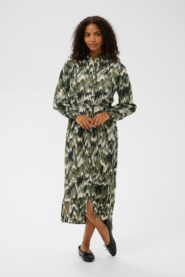 Deze rok van Kaffe heeft een satijnlook en in de stof zit een fijne structuur. De rok heeft een elastische band.