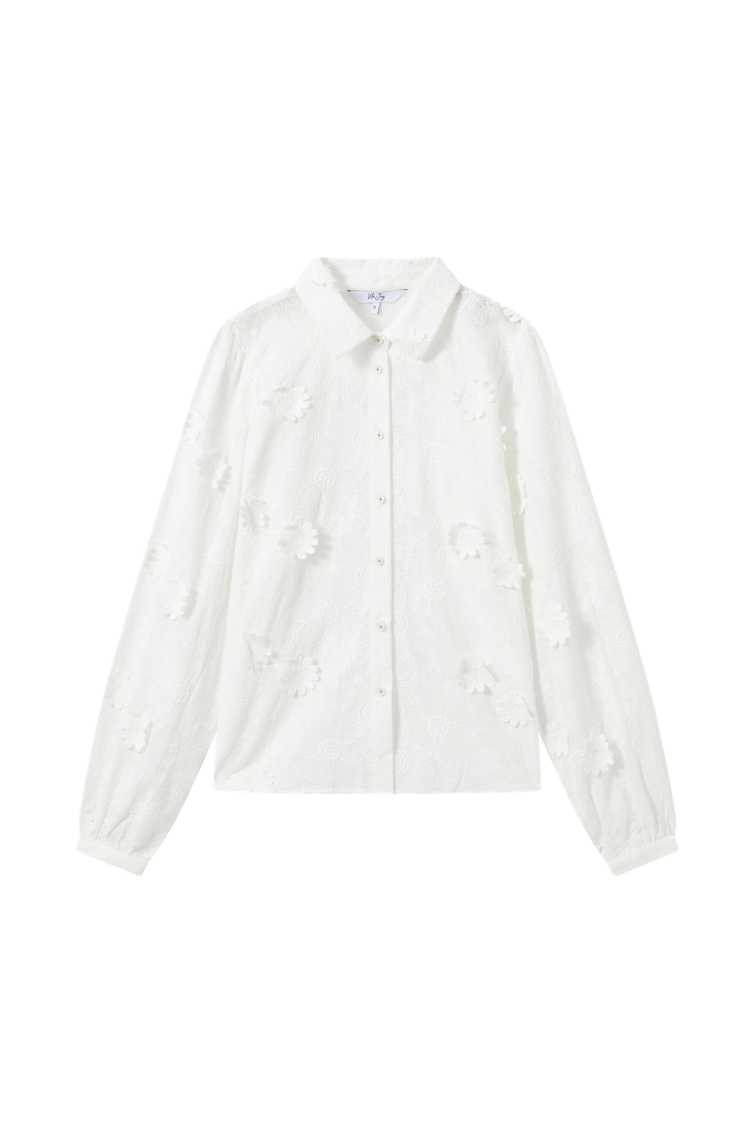 Deze blouse van Vila Joy heeft 3D bloemen en geborduurde bloemen als motief.