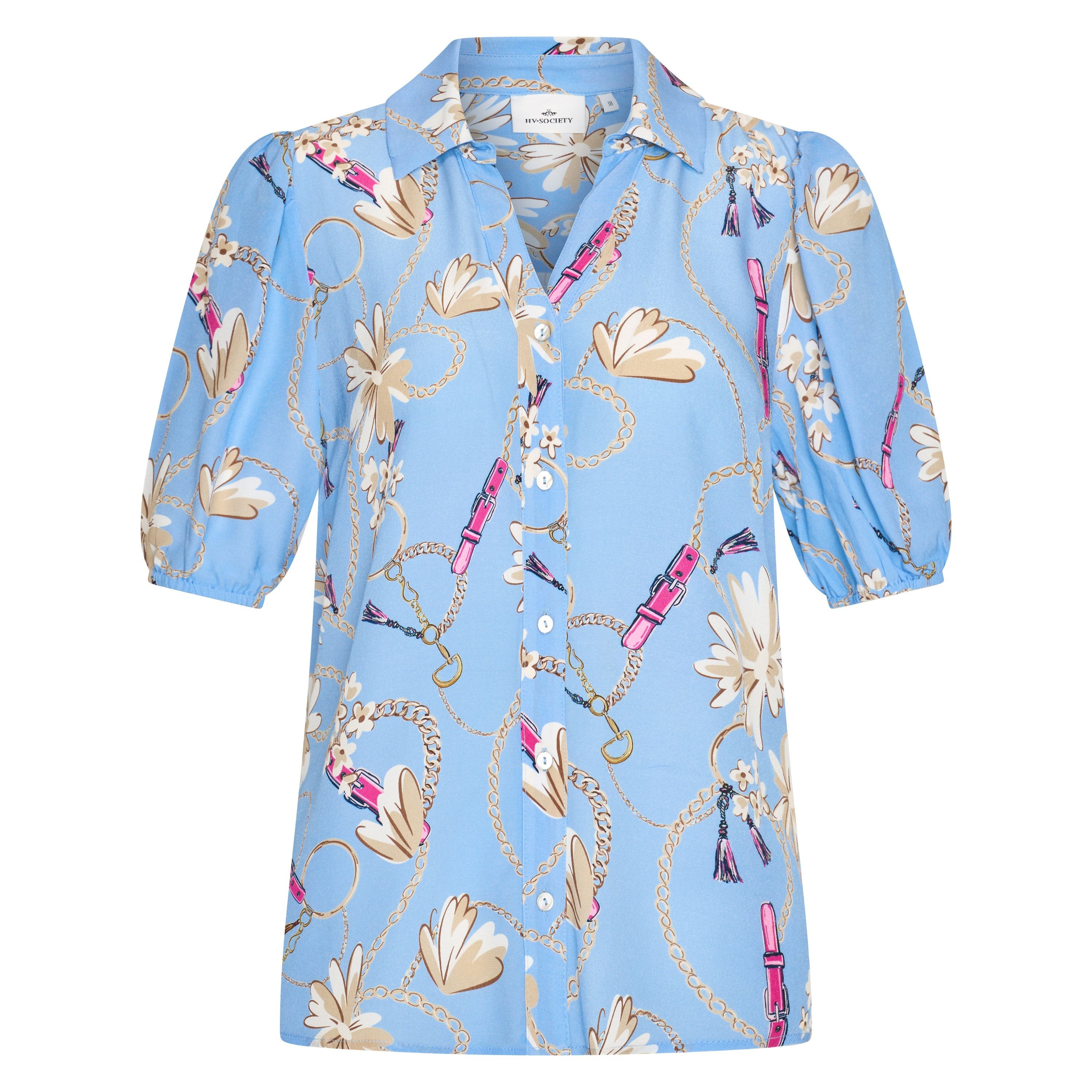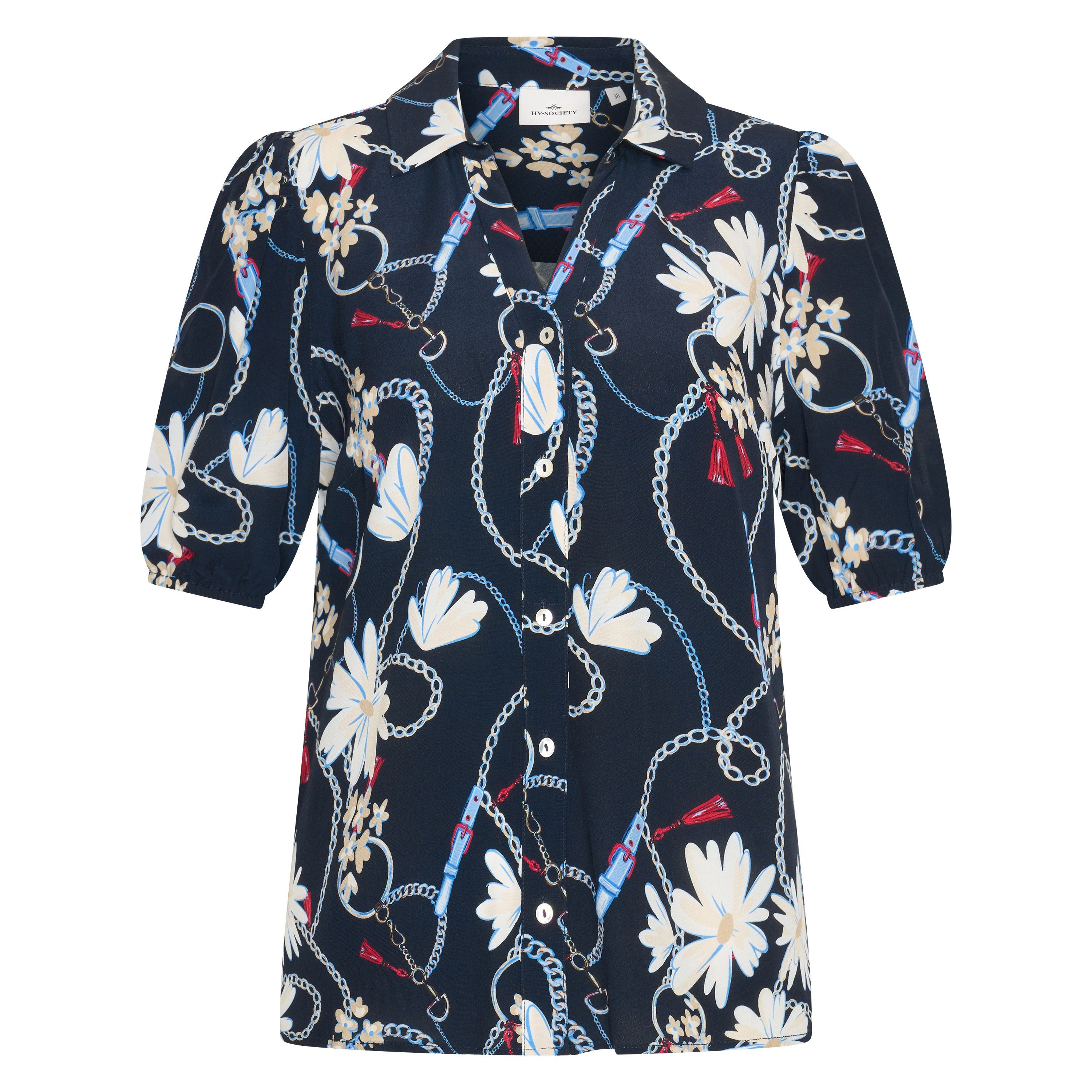 Deze blouse van HV Polo heeft een allover dessin, een klassieke kraag en halve mouwen met elastiek.