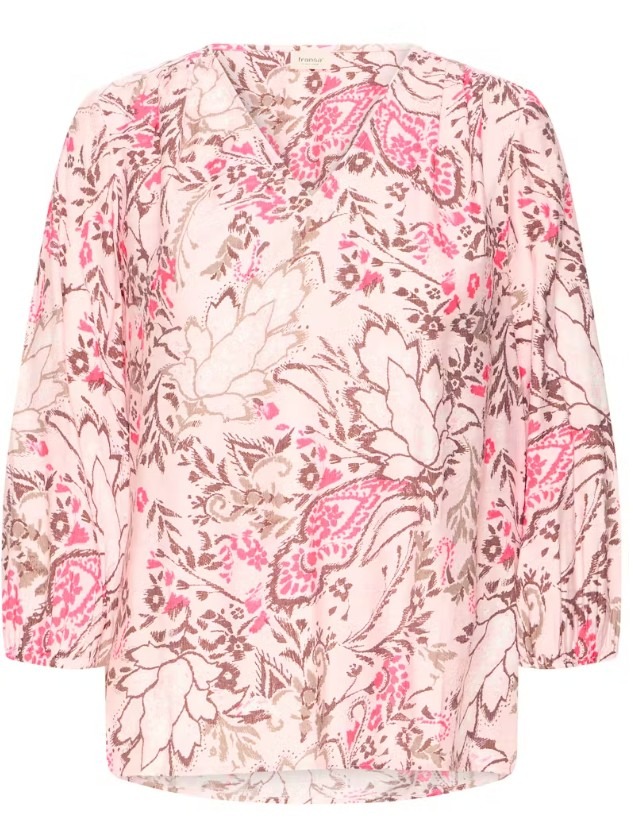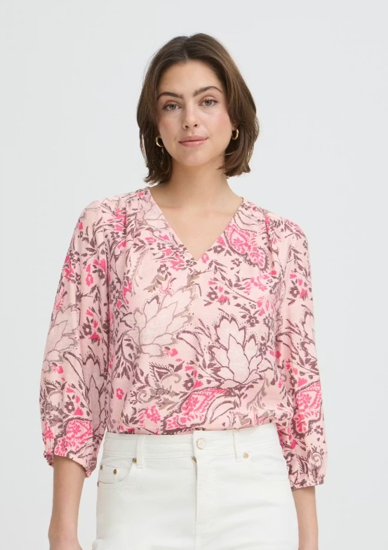 Deze basistop van Fransa heeft een linnenlook, v-hals en een kapmouwtje.