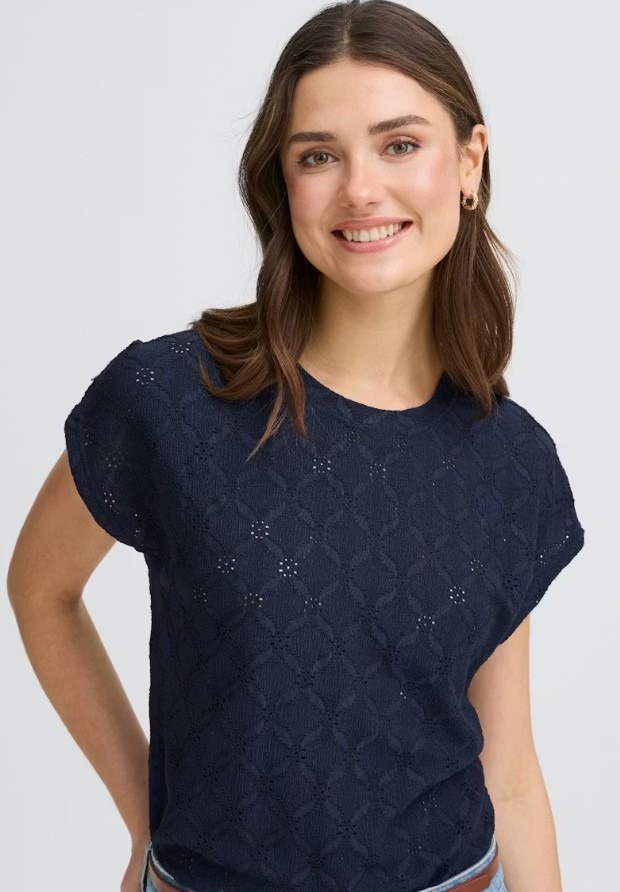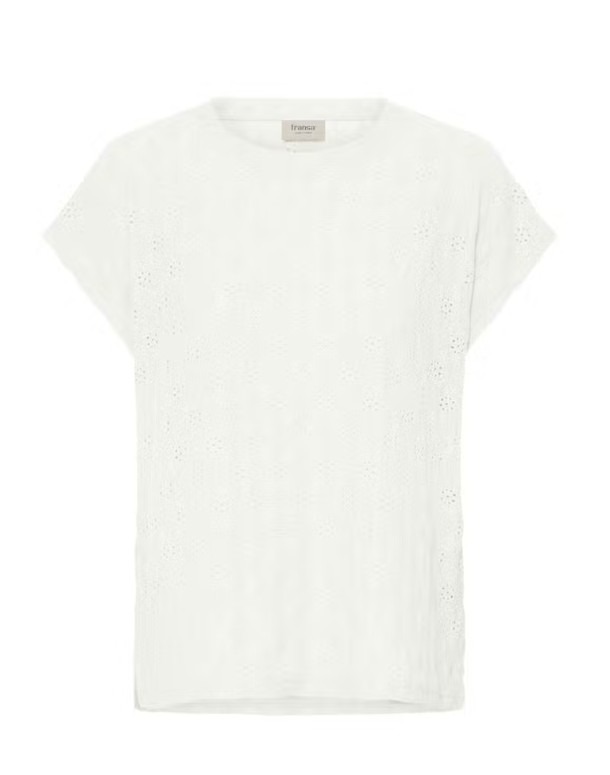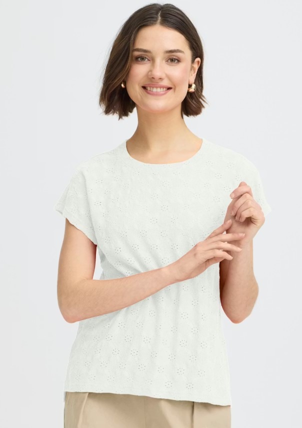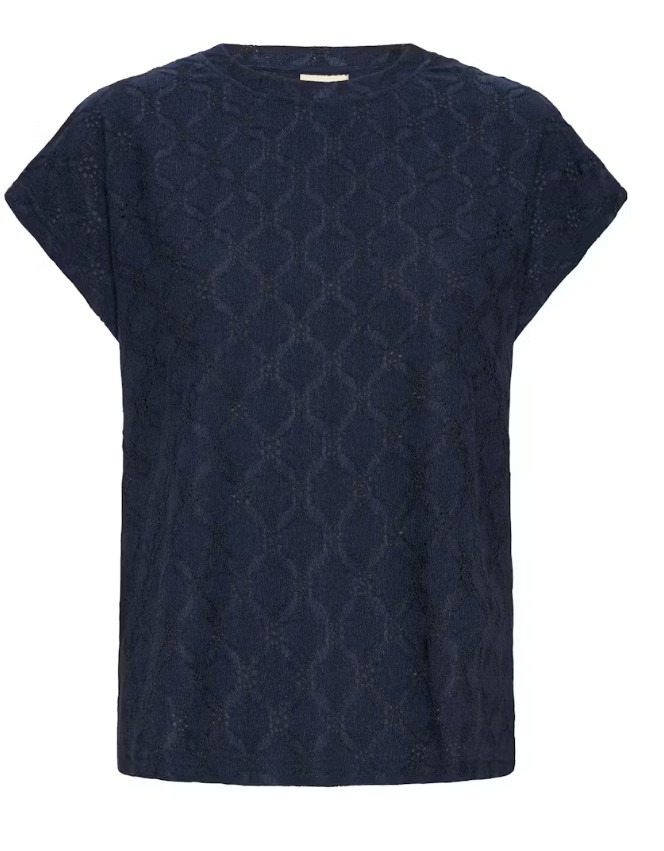 T-shirt met rechte pasvorm en zachte, kanten textuur. Voorzien van een ronde hals, korte kapmouwen en een subtiel all-over motief.