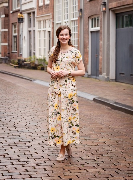 Deze top van NED heeft een allover bloemendessin, de top heeft een kapmouwtje met omslag en elastiek aan de onderkant.