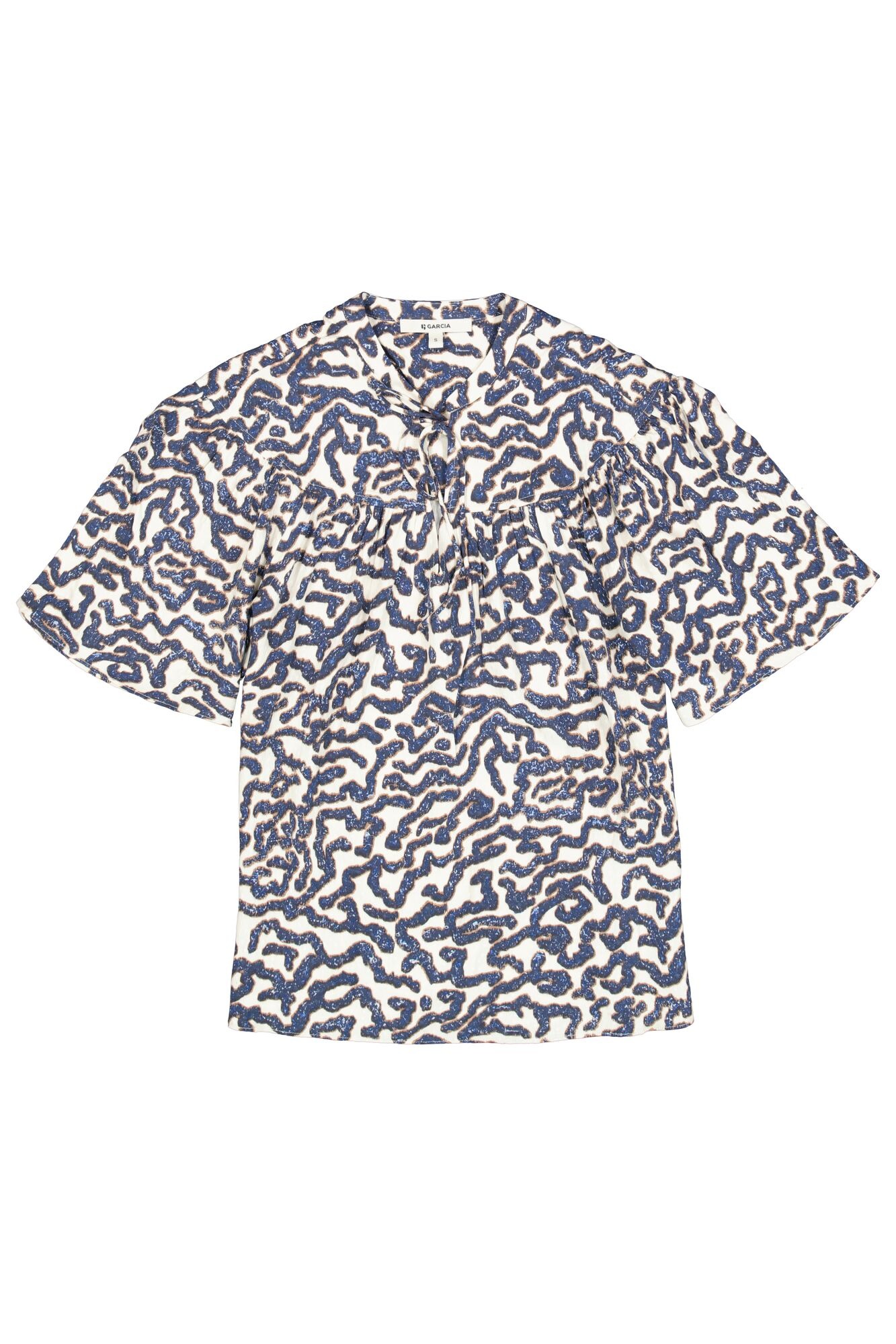 Deze top van Garcia heeft een allover dessin, met strikdetail bij de hals en korte mouwen.