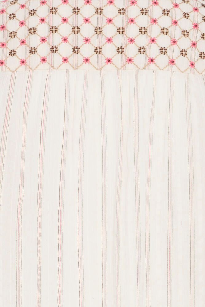 Deze top van Fransa heeft een fijn streepjesdessin met geborduurde bloemetjes op de schouder en gedeelte van de achterkant.