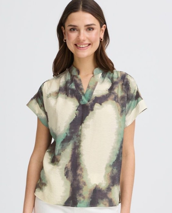 Top met streep en geborduurde bloemetjes bij schouder | Fransa