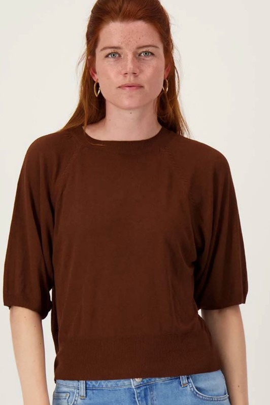 De Zusss boothals trui is perfect voor een comfortabele en modieuze look. Deze boothals trui heeft een zachte, mid brown kleur die gemakkelijk te combineren is met je favoriete jeans of rok. Met een ontspannen fit en korte mouwen biedt deze Zusss boothals trui zowel stijl als comfort. Dankzij de subtiele boothals krijgt de trui een elegante uitstraling die je keer op keer wilt dragen.