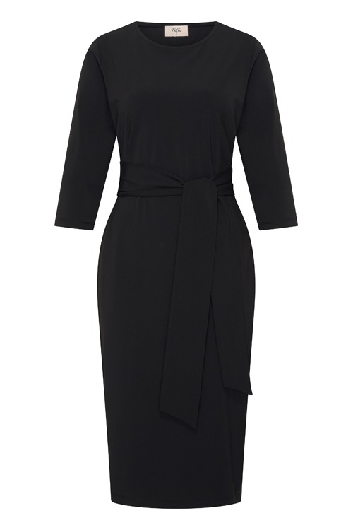 Deze jurk van Nelle is in de bekende travelkwaliteit, de jurk heeft een ronde hals, 3/4 mouw en een bijpassend ceintuur.