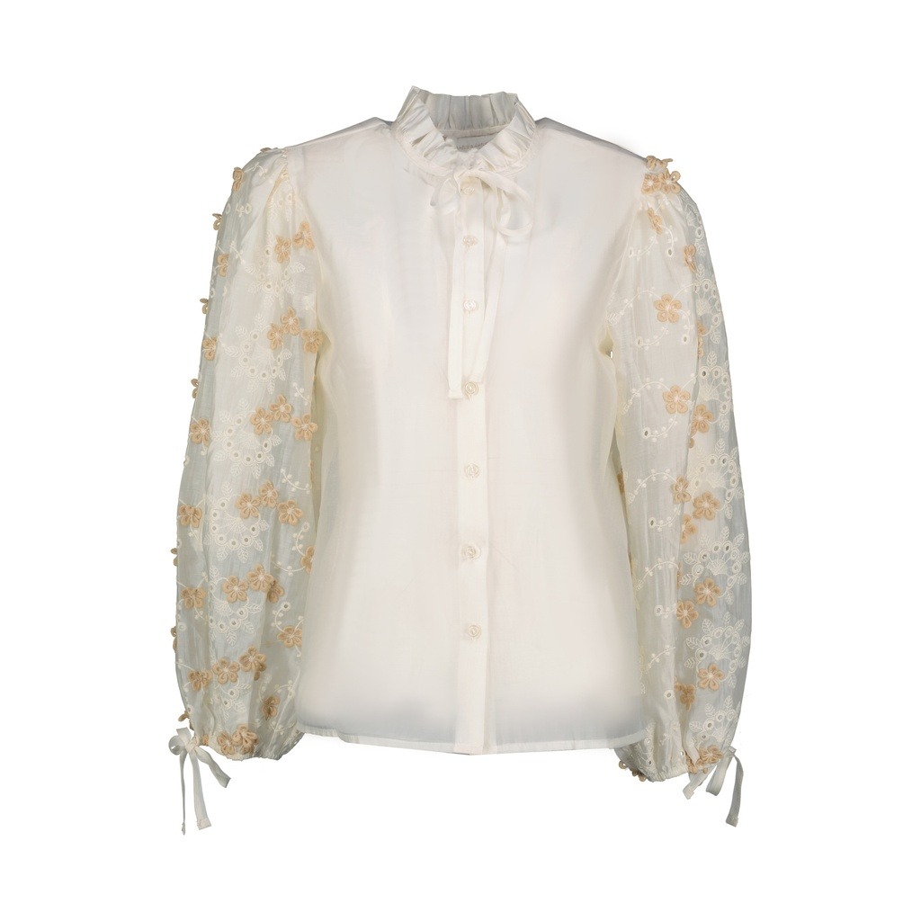 Blouse glanzend met bloemen op mouw | Amelie & Amelie
