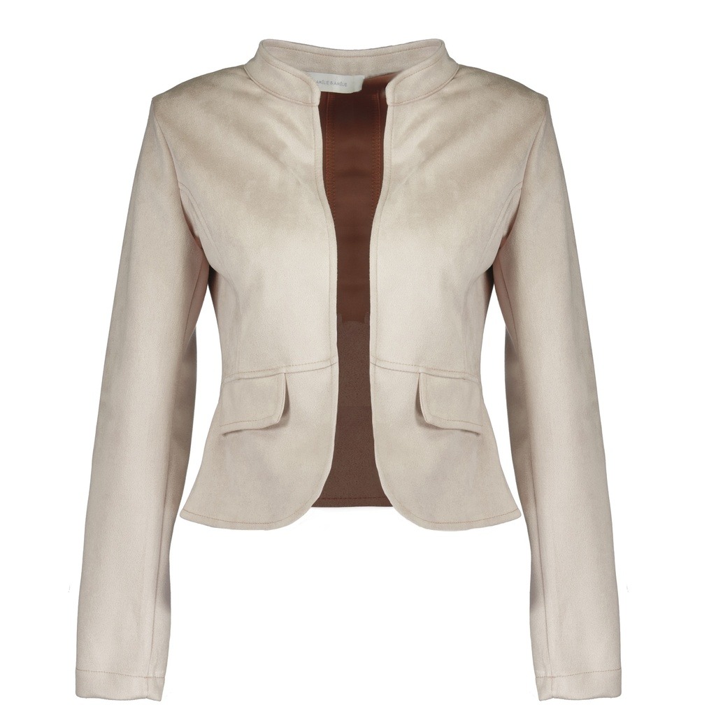Dit openvallende jasje van Amelie & Amelie is in suedine kwaliteit en heeft 2 klepzakken aan de voorkant.