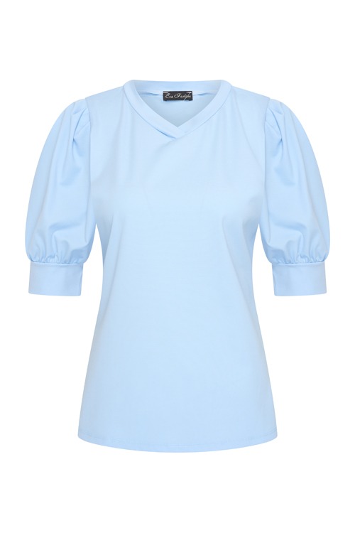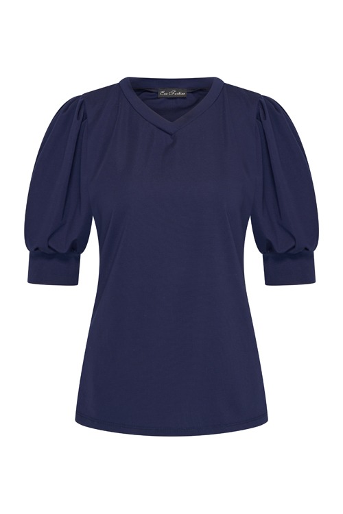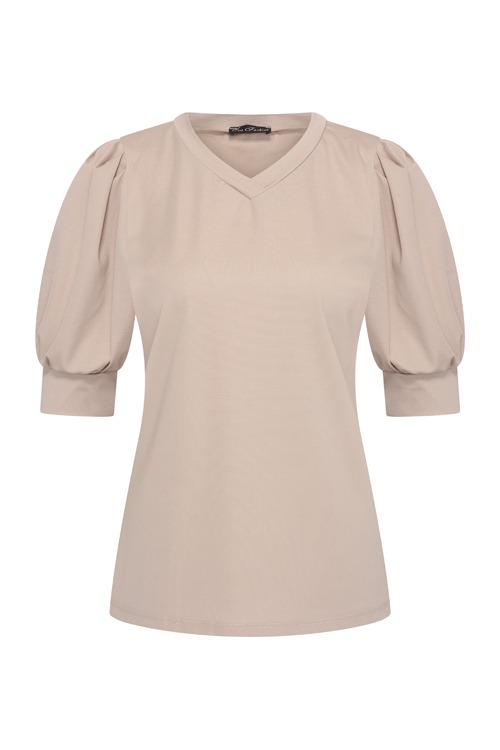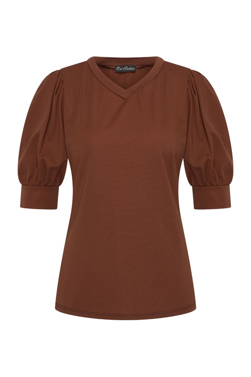 Dit t'shirt van Eva fashion is te combineren met de bijpassende rok als twin-set. Het t'shirt heeft een ronde hals en pofmouwen.