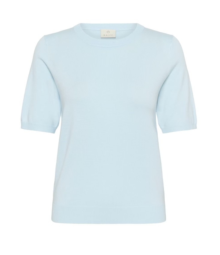 Gebreide top met korte mouwen, ronde hals en rechte pasvorm. Voorzien van fijne ribboorden en een gladde afwerking voor een minimalistische uitstraling.
